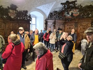 Bei einer kurzweiligen Führung mit Hans Weiß, dem Ortsheimatpfleger von Ensdorf, durften wir nicht nur den Mönchschor bestaunen, sondern auch einen Blick in die prachtvolle Sakristei werfen – laut Hans „durchaus auf Augenhöhe mit Waldsassen“. Heute ist das Kloster ein modernes Bildungshaus, das junge Menschen mit spannenden Programmen begleitet.
