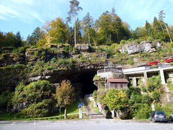 Das Höhlenportal, auch als das "Tor zur Unterwelt" bekannt, beeindruckt mit seiner majestätischen Präsenz. Es liegt zwischen Pottenstein und der Schüttersmühle, eingebettet in das enge Tal des Weihersbachs am westlichen Steilhang, etwa zwei Kilometer südlich von Pottenstein. Das Portal, ein imposantes 25 Meter breites und 14 Meter hohes Eingangstor, zählt zu den größten Höhleneingängen in ganz Deutschland und ist seit Langem bekannt.