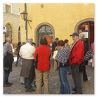 Mit unserer Regensburger Stadtführerin, einer echten Expertin, ging es dann richtig los – und zwar auf Oberpfälzisch! Jetzt wissen wir, was es bedeutet, wenn jemand „Gell, da schaugst!“ ruft – und wir schauten, was das Zeug hielt. Dabei erfuhren wir alles über die Geschichte der Brücke, die im Mittelalter so wichtig war, dass man ihr fast schon ein Denkmal errichten wollte – ach so, das war ja schon erledigt. Aber keine Sorge, unser Humor kam während der Tour nicht zu kurz! Unsere Stadtführerin wusste immer, wie sie uns mit Anekdoten aus der Geschichte und einem Augenzwinkern unterhielt.