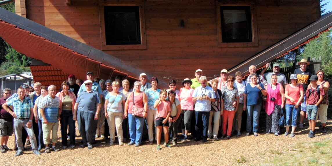 Den Höhepunkt bildete aber der Besuch des „Waldwipfelweg“ in St. Engelmar bei einem Rundgang in bis zu 30 Metern höhe und mit einer beeindruckenden Aussicht. Zudem faszinierte der Natur Erlebnis Pfad und die vielen optischen Phänomene die Gruppe. Die besondere Illusion erwartete aber die Besucher im bayernweit einzigartigen „Haus am Kopf“, bei dem alles auf den Kopfgestellt war. Wer Probleme mit der Koordination hatte blieb draußen und lies es sich bei einem kühlen Eis gut gehen.