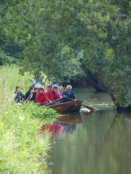 Die Fahrt erinnerte stellenweise an den Spreewald – nur ohne Gurken, aber mit deutlich mehr Oberpfälzer Humor. Die Zille schlängelte sich gemächlich durch die Auenlandschaft, das Wasser gluckerte beruhigend, und wer nicht paddelte, war für die Verpflegung zuständig (Getränke gab’s an Bord – man war ja nicht auf einem Survival-Trip!).