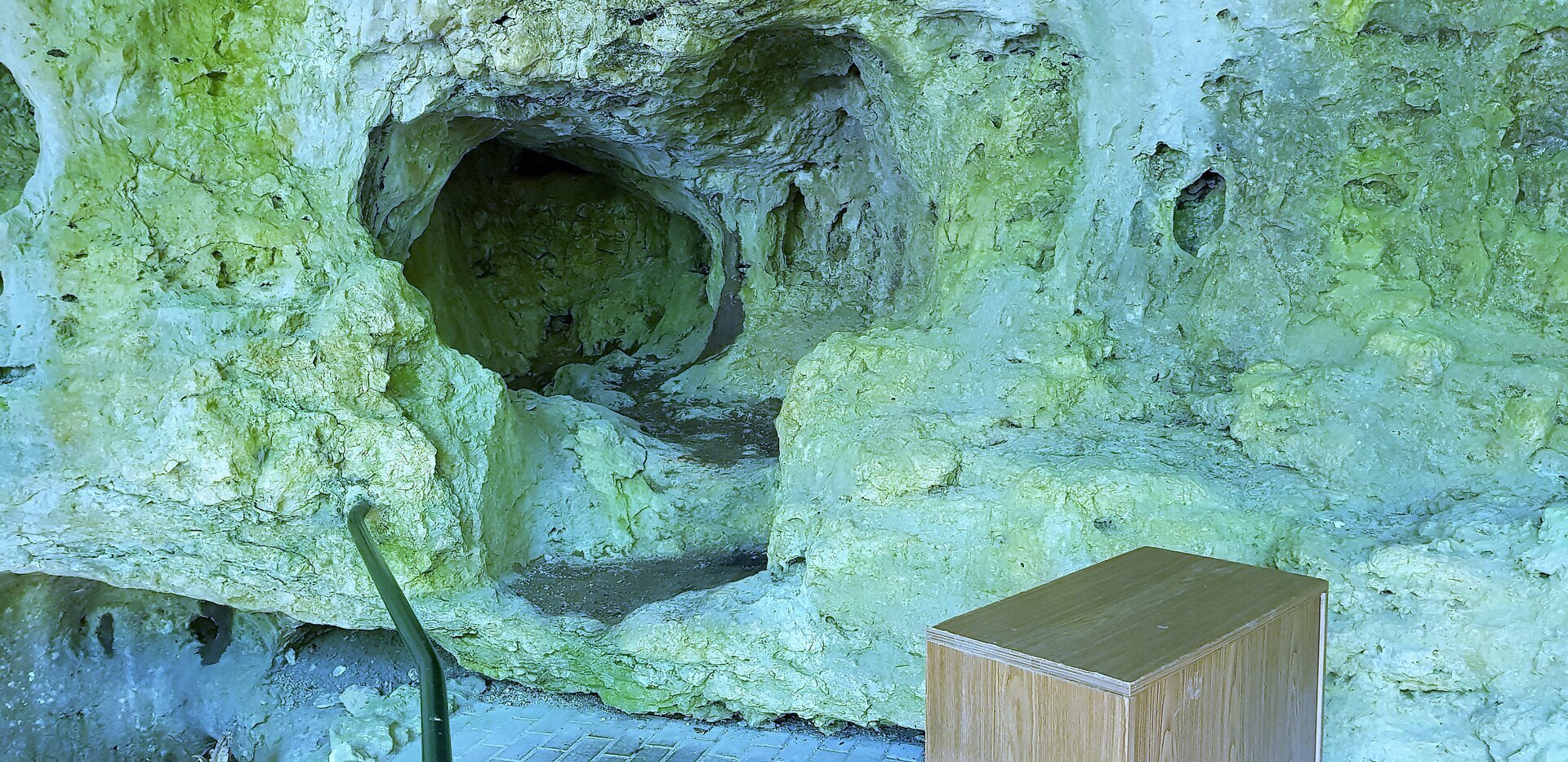 Versteckt im Wald, zwischen den sanften Hügeln des Osterbergs, liegt die rund 185 Meter lange Tropfsteinhöhle, deren Geschichte bis ins Jahr 1630 zurückreicht. Der heute genutzte Eingang wurde 1905 künstlich angelegt, um die Höhle der Öffentlichkeit zugänglich zu machen. Die „Bandenschieber“ staunten über bizarre Tropfsteingebilde, einen kleinen Höhlensee und mysteriöse schwarze Ablagerungen an den Wänden – Überreste von Manganverbindungen, deren Ursprung noch immer nicht vollständig geklärt ist.