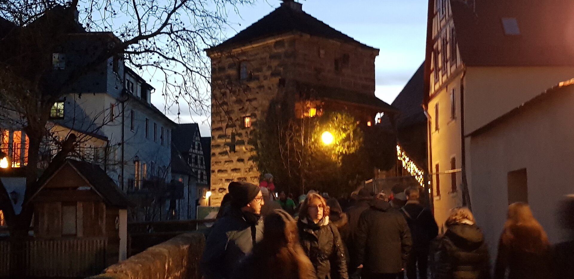 Und dann waren da noch die Museen in den alten Türmen, die extra für uns die Pforten öffneten. Wer sich immer schon gefragt hat, wie Hopfen früher geerntet wurde oder wie schwer so ein mittelalterlicher Weihnachtsbaumständer war – der wurde hier schlauer. Für alle anderen gab’s zum Glück auch fränkische Spezialitäten – von Bratwürsten über Schupfnudeln bis hin zu „Ach komm, einer geht noch“-Glühwein.