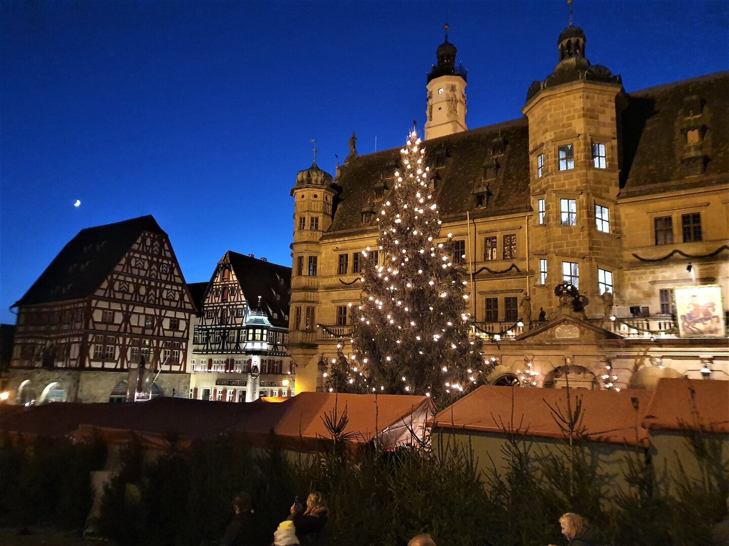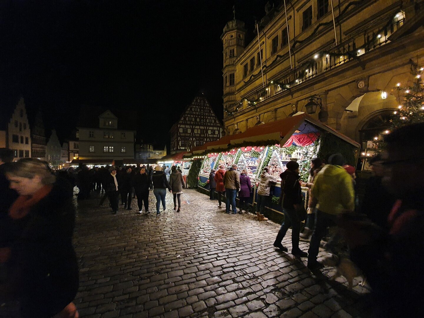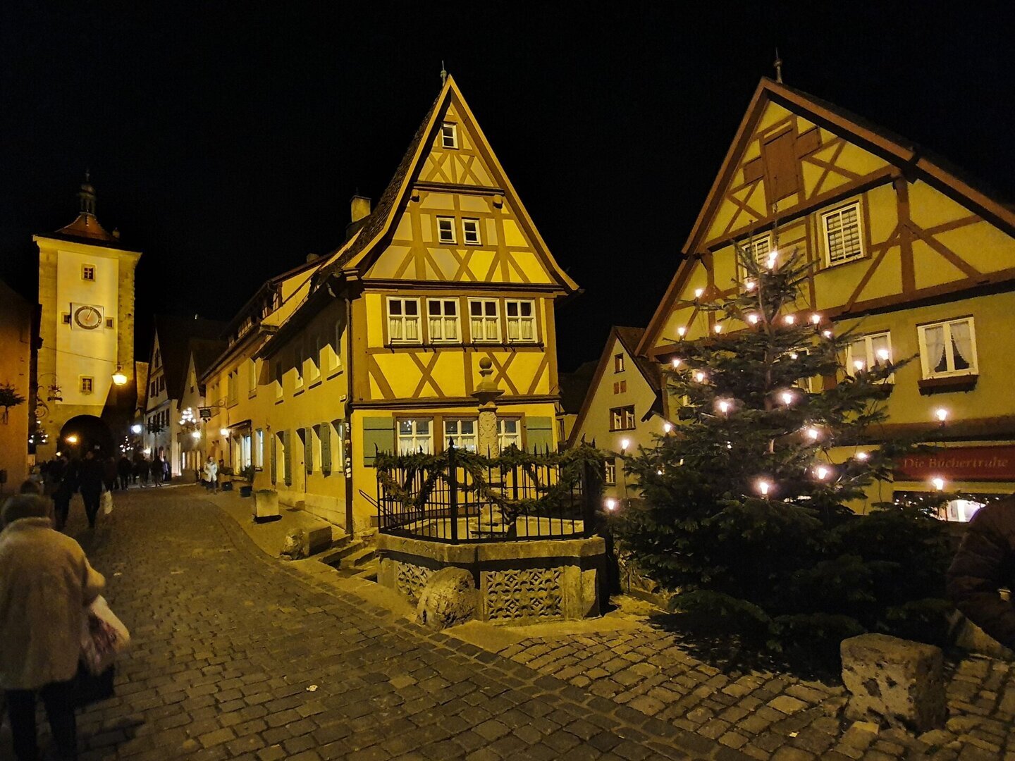 Schon bei der Ankunft war klar: Rothenburg kann nicht nur Mittelalter, sondern auch Märchenbuch! Die Stadt sah aus, als hätte jemand einen riesigen Adventskalender aufgemacht und vergessen, ihn wieder zu schließen. Überall Lichter, Tannenzweige, Girlanden – und mittendrin wir, mit Mütze, Schal und (zum Glück) festen Schuhen auf historischem Kopfsteinpflaster.