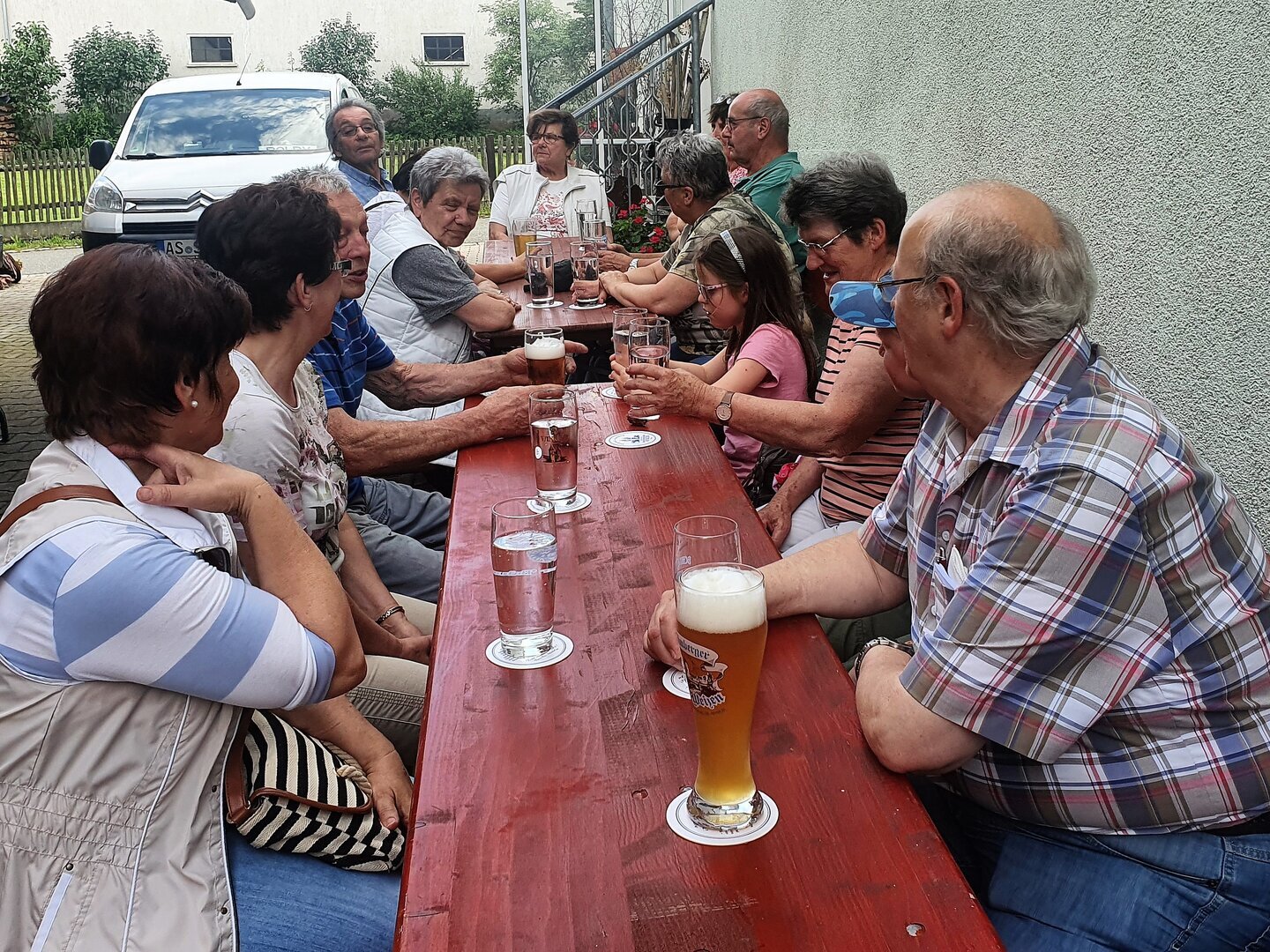 Die Brotzeit, die uns im gemütlichen Biergarten serviert wurde, war dann ganz bodenständig und herzhaft – genau das, was man nach einem langen Nachmittag zwischen Bienenstöcken und Fachwerkhäusern braucht. Saftiges Schinkenbrot, frisches Bauernbrot, würziger Käse und knackige Essiggurken ließen keine Wünsche offen. Die Wirtsleute empfingen uns mit herzlicher Gastfreundschaft, wie man sie nur in solchen Traditionslokalen erlebt – mit einem Lächeln und der festen Überzeugung, dass hier jeder Gast ein bisschen Familie ist.
