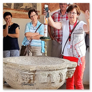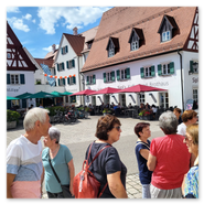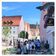 Weiter ging´s zu der katholischen Pfarrkirche St. Vitus in Kottingwörth. Es ist ein barocker Kirchenbau, der in der zweiten Hälfte des 18. Jahrhunderts an der Stelle einer mittelalterlichen Wehrkirche errichtet wurde. Wegen ihrer imposanten Türme wird die dem Patrozinium des heiligen Vitus unterstellte Kirche auch als „Kleiner Dom“ im Altmühltal bezeichnet. Um 1310 wurde der Chor der Kirche, jetzt Vituskapelle mit Fresken ausgestattet, die noch sehr gut erhalten sind und eine Sehenswürdigkeit von hohem kunst- und kulturhistorischem Wert darstellen.Die Rundreise führte uns jetzt in die Mitte des Naturpark Altmühltals, direkt am Main-Donau-Kanal liegt die Stadt Beilngries. Ein Hauch von Süden weht durch die Straßen der historischen Altstadt mit ihren mittelalterlichen Türmen und barocken Bauten. Schon die Eichstätter Fürstbischöfe zog es hierher, um den Sommer zu genießen. Maria unsere Reiseleiterin erklärte uns warum die Beilngrieser den Spitznamen „Zwiebeltreter“ tragen: Im versumpften und ausgetrockneten Stadtgraben wuchs einst hohes Gras und Schilf. Die Stadtväter nahmen an, dass es sich dabei um Zwiebelschlote handelt. Um Johanni mussten die Bürger die „Zwiebeln“ niedertreten. Als Fremde das sonderbare Treiben beobachteten bekamen die Beilngrieser den Spitznamen die „Zwiebeltreter“.