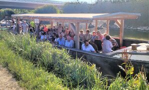 Jetzt kamen wir auch zum Höhepunkt unserer Tagesfahrt. Ein Originalkahn aus damaliger Zeit ist die "Alma Viktoria". Sie transportierte uns anstatt Güter auf dem alten Kanal. Wie vor 175 Jahren zieht ein Kaltblutpferd auf den ausgetretenen Treidelpfaden den Lastkahn über den Ludwig-Donau-Main-Kanal. Wenn die „Alma Viktoria“ (Baujahr 1933) die Schleuse 25 in Mühlhausen verlässt, dann beginnt die gemütliche Reise in die Vergangenheit. Die Pferdestärken stammen von einem süddeutschen Kaltblut der Familie Deflorin-Luber. Der Senior stand selbst am Ruder. Als wir abgelegt hatten fragte er, ob wir direkt aus Sulzbach kommen, das wir natürlich mit „ja“ beantworteten und dann erzählte er vom „Dela Musica“, der „Capri-Bar“, den Kofler-Saal in Neukirchen und über Kauerhof. Er kannte also unser Sulzbach von früher sehr gut.Nach dieser tollen Tour im Altmühltal ließen wir uns in der Kutscher-Alm bewirten. Zum Abendessen hatten wir ein Grillbuffet vorbestellt. Danach unterhielt uns der Senior noch mit Geschichten über den „Ludwig-Donau-Main-Kanal“, aber auch ein paar Witze durften nicht fehlen. Somit wurde dies ein gelungener Abend und alle konnten vergnügt die Heimreise nach Sulzbach wieder antreten.