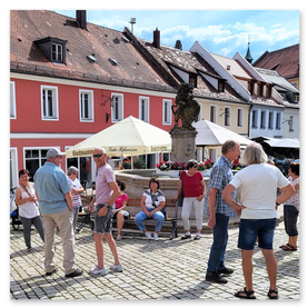 Nach so viel Wissen, Wegen und Witz war der Löwenbrunnen wieder erreicht – Zeit für eine wohlverdiente Einkehr im Gasthaus „Bayerischer Hof“, wo wir die Tour standesgemäß bei gutem Essen und noch besseren Gesprächen ausklingen ließen.