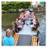 Unsere Bootsbegleiterin erklärte uns, dass auf diesen Plätten früher Erze transportiert wurden. Heute kutschieren sie eher Bierbäuche und Hobbyhistoriker – also genau richtig für uns. Zwischen Naturidylle und Stadtgeschichte ließ es sich aushalten – obwohl sich einige Bandenschieber leise fragten, ob man Plätten nicht auch mit Motor nachrüsten könnte.