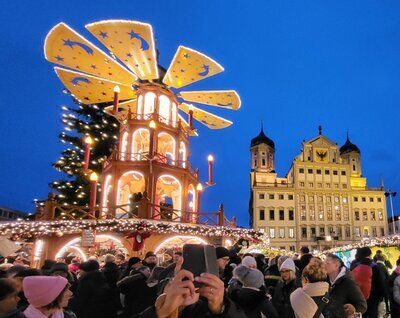Ein zauberhafter ChristkindlesmarktAnschließend besuchten wir den Augsburger Christkindlesmarkt, einen der schönsten Weihnachtsmärkte Deutschlands. In der Maximilianstraße und rund um die Moritzkirche reihte sich Stand an Stand. Obwohl ein Tag zuvor bekannt wurde, dass eventuell ein Anschlag geplant war, fühlten wir uns trotzdem sicher, sodass wir uns unbesorgt in das weihnachtliche Treiben stürzen konnten.