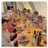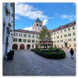 Der Nachmittag führte uns ins Kloster Neustift, wo wir eine beeindruckende Führung durch die geschichtsträchtige Anlage bekamen. Ein besonderes Highlight war die Weinprobe bei einer der ältesten Weinkellerei der Welt – und siehe da, als der erste Tropfen den Gaumen berührte, machte der Himmel plötzlich auf und bescherte uns das schönste Wetter! Gut gelaunt und ein wenig beschwingt fuhren wir weiter, stimmten Lieder für unser kommendes Wirtshaussingen an und bezogen schließlich unser Quartier im Hotel Teutschhaus in Kurtinig an der Weinstraße. Nach einem köstlichen gemeinsamen Abendessen ließ sich die Reisegruppe müde in die Betten fallen.