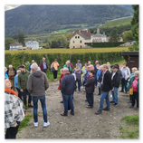 Endlich – der vierte Tag blieb trocken! Am Vormittag stand eine spannende Führung über das hoteleigene Obst- und Weingut auf dem Programm. Walter Teutsch, der Chef persönlich und seine Assistentin nahmen sich die Zeit, uns durch die Weinberge zu führen und interessante Details über den Anbau und die verschiedenen Sorten zu vermitteln. Eine Apfelverkostung rundete das Erlebnis ab.