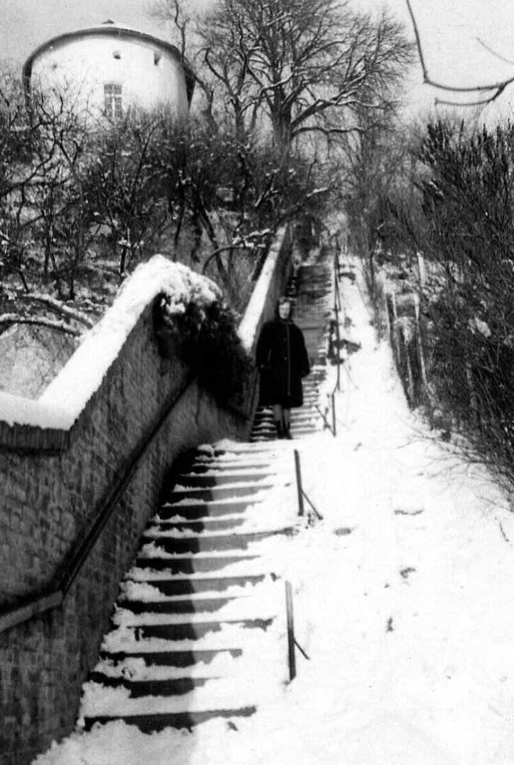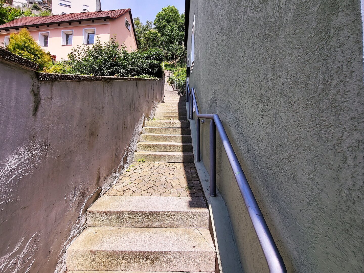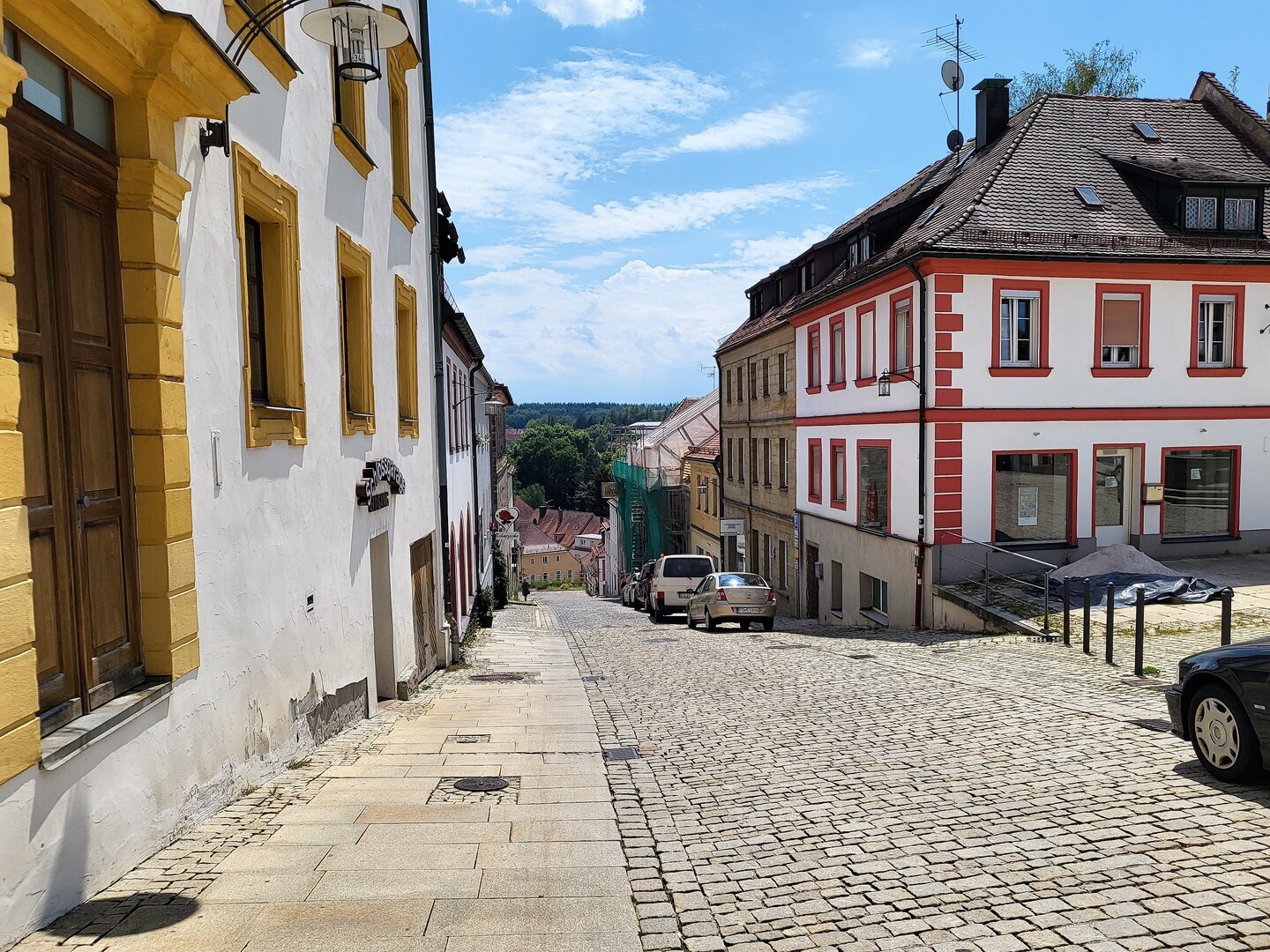 Unser Rundgang beginnt am Luitpoldplatz. Von hier aus marschieren wir die Bergstraße hinunter, um den ersten Abschnitt unseres Spaziergangs zu starten. Keine Sorge, der Weg ist sanft genug, dass wir uns nicht wie Alpinisten fühlen müssen. Am Ende der Bergstraße erreichen wir eine Treppe, die uns hinunter in die Straße „Auf der Rahm“ führt. Diese Treppe ist der erste Schritt in eine kleine Zeitreise – denn hier begegnen wir der Geschichte Sulzbachs mit jedem Schritt.