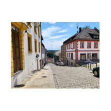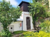 Rechts sehen wir das ehemalige städtische Wasserwerk (erbaut 1878) und das ehemalige städtische Elektrizitätswerk. Gegenüber, zwischen den beiden Grundstücken (früher Weber-Villa, jetzt die Terrassenhäuser) befand sich die so genannte steile „Himmelsleiter“ mit 116 Stufen, die zur Bastei führten. Der anschließenden Brauhausgasse folgen wir nach links. Hier war die eigentliche „Braustätte“. Angefangen von der „Stadtmühle“ (jetzt Lagerhaus Kopp), das „fürstliche und hintere Brauhaus“, die „Mälzerei“ bis zur „Brauerei Fentsch“ mit dem Gasthaus „Zur Sonne“.In Höhe des Lagerhauses Kopp gibt es einen Treppenaufgang, der direkt in die Stadt auf den Bühlberg führt. Wir gehen jetzt links in die Untere Bachgasse. Vor uns die ehemalige „Stadtmühle“, wir gehen weiter bis zur „Hausmannsflei“, der vierten Quelle im Boch, und dann rechts den Kugelplatz hinauf.