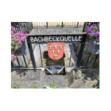 An der „Bochbeckquelle“, einer Karstquelle mit stolzen 30 Litern pro Sekunde, legen wir einen kurzen Stopp ein. Direkt dahinter befinden sich zwei traditionelle Gastwirtschaften – „Zum Bochbeck“ und das ehemalige Gasthaus „Zur Sonne“. Das Gasthaus „Zur Sonne“ hat in den letzten Jahren eine wechselvolle Geschichte hinter sich. Nachdem die Familie Heldrich 1992 das Lokal verließ, gab es mehrere vergebliche Versuche, an den Glanz vergangener Zeiten anzuknüpfen. Ob es irgendwann wieder so wird? Die Hoffnung scheint mittlerweile fast verflogen zu sein. Aber vielleicht ist es auch einfach ein Symbol für die ständigen Veränderungen im Bochviertel.