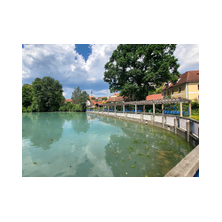 Kurz darauf erreichen wir die „Villa Romie“, ein prachtvolles Fachwerkhaus, das 1930 erbaut wurde. Jetzt sind wir fast im Stadtpark angekommen, einem wahren Paradies mitten in der Stadt. Der Park wurde 1934 angelegt und bietet mit seinen weitläufigen Wasserflächen, Wiesen und dem Spielplatz eine perfekte Erholungsoase. Wer will, kann sich hier in der Kneipp-Anlage erfrischen oder auf dem Fußparcours eine Runde drehen. Besonders spannend ist der Bienenlehrpfad am südlichen Eingang, gegenüber dem Bahnhof, wo der Bienenzuchtverein Sulzbach-Rosenberg die Bienen pflegt. Ein Paradies für Naturfreunde!