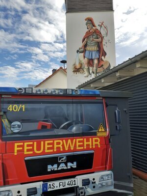 Wir gelangen zum Dörfchen Oberhof, von wo uns schon weitem ein mit jahreszeitlichen Impressionen bunt bemaltes ehemaliges Trafohäuschen begrüßt. Gleich daneben lädt eine Bank am Dorfbrunnen zum Verweilen ein. Hier beginnt auch ein Wanderweg namens „Allee der Grünen Stars“, ein künstlerisch gestalteter Lehrpfad, der über unsere heimatlichen Baumarten informiert. Wir werden den Weg noch öfter kreuzen. Wir radeln auf der Straße weiter, unterqueren die Autobahn und biegen in Ursensollen zunächst rechts auf die B 299 und 100 m weiter nach links in die Scharfenbergerstraße. Ein schmaler Weg nach rechts führt zum Kirchplatz mit einer schönen Mutter-Gottes-Statue (km 20,2). Von dort leicht links halten. Von weitem sehen wir das auf den Schlauchturm gemalte Bild des hl. Florian. Wir halten vor dem Feuerwehrhaus mit einer bunten Attrappe eines Feuerwehrautos, was sicher nicht bedeutet, dass die Ursensollener Feuerwehr nicht wirklich existiert. Nun kurz Richtung Hohenburg, nach rund 100 m aber gleich links ab.