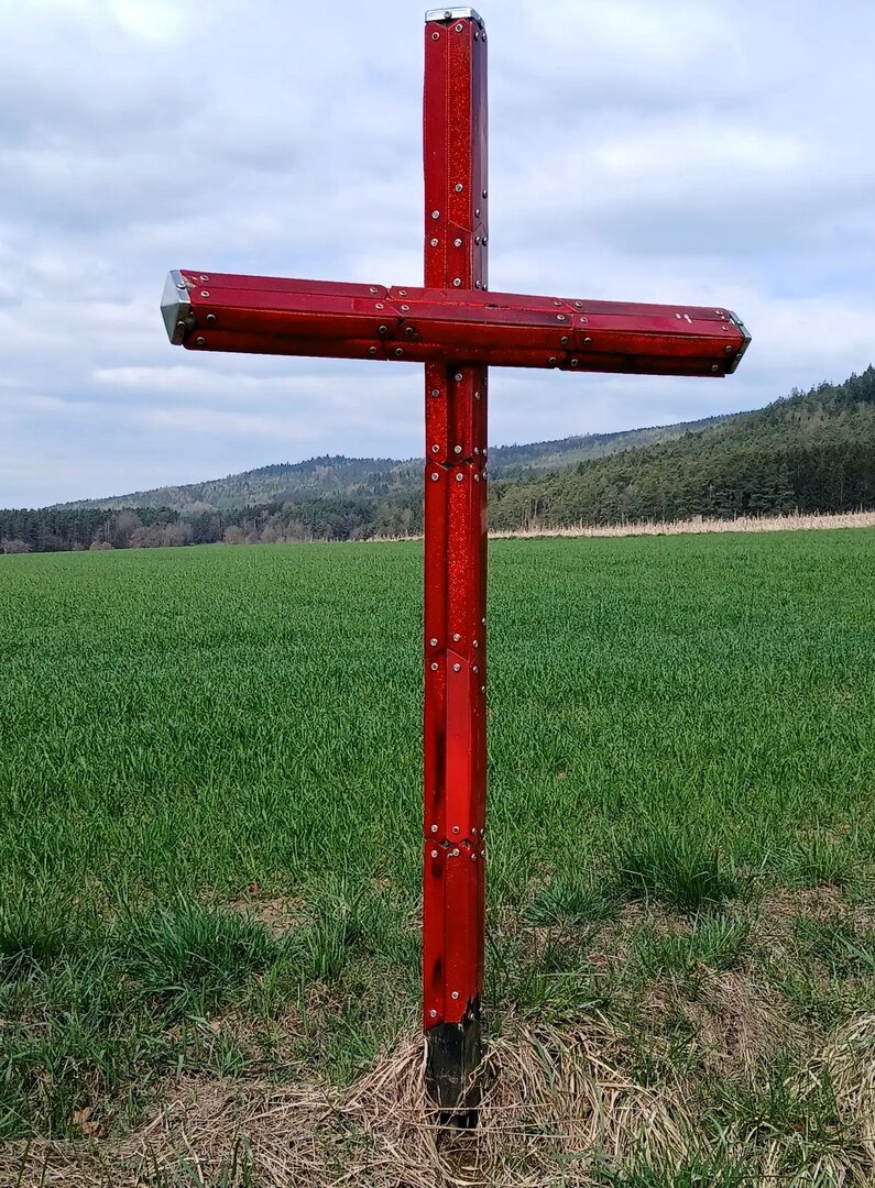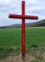 Rund 30 Meter bevor wir nach rund 1 km den Wald verlassen, kann man links leicht ein kleines Gedenkkreuz für einen jungen russischen Kriegsgefangenen übersehen, der 1945 auf einem der berüchtigten Todesmärsche erschossen wurde – nur, weil er erschöpft war. Ein Landwirt hat ihm diese Erinnerung gewidmet.Den Oberammersrichter Weg verlassen wir nach rechts auf dem Weideweg und erreichen nach Überquerung der Staatsstraße 2238 Neubernricht. Hier auf den grünen Pfeil achten, der uns etwas zickzack über Kienlohe auf die Straße nach Ursulapoppenricht leitet. Dort am Friedhof rechts auf die Alte Dorfstraße.