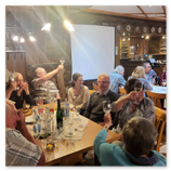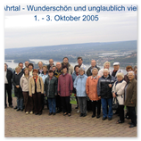 Nachdem das Buffet jetzt fast leer geräumt war, begann der 2. Teil mit einem Wein aus dem Ahrtal, dies besuchten wir vom 1. - 3. Oktober 2005 mit einer Weinprobe in Mayschoss-Altenahr, die Flutkatastrophe vom 14. /15. Juli 2021 hat das schöne Ahrtal voll erwischt und auch die Gebäude der WG in Mayschoss, Altenahr sind zerstört worden. Ein Renner ist der Blanc de Noir, der weiße Wein aus der roten Traube, eine Spezialität der Ahr, den es jetzt galt zu probieren, anschließend gab es die Bilder des letzten Jahres zu sehen: