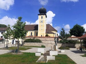 Diese etwa 34 km lange Radtour bietet eine faszinierende Mischung aus Geschichte, Natur und Kultur. Startpunkt der Tour ist die Nepomukstatue, von wo aus es in das idyllische Waldgebiet der Fatz’n geht. Die Strecke führt uns zu historischen Orten wie dem Frohnberg, der im Hochmittelalter eine bedeutende Schutzaufgabe erfüllte und heute als Wallfahrtsort bekannt ist. Ein weiteres Highlight der Tour ist ein schmiedeeisernes Gedenkkreuz, das an einen tragischen Vorfall aus dem Jahr 1945 erinnert. Die Route schlängelt sich durch malerische Dörfer und bietet herrliche Ausblicke auf die Landschaft rund um die Vils. Der Dorfplatz in Poppenricht, mit seinem Brunnen und der Figur des Erzengels St. Michael, lädt zu einer kurzen Pause ein, bevor es weiter Richtung Sulzbach-Rosenberg geht. Zahlreiche Einkehrmöglichkeiten entlang der Strecke, wie in Frohnberg, Lohe und Amberg, bieten sich für eine erholsame Rast an.Vom Start weg an der Nepomukstatue radeln wir auf den Annaberg zu, biegen aber dann nach links (Grüner Pfeil) ab und befinden uns schon auf dem ersten unbefestigten Wegstück in das Waldgebiet der Fatz’n . Es geht gerade über die erste und nach rechts an der zweiten Wegkreuzung zum Frohnberg (km 4,2 ). Drei Tafeln informieren uns hier über die wichtigsten Geschichtsepochen der Anhöhe. Im Hochmittelalter besaß der befestigte Frohnberg eine wichtige Schutzaufgabe im Auftrag der Sulzbacher Grafen für den Vilsübergang. Seit Jahrhunderten ist sie nun Wallfahrtsort. In der Wallfahrtskirche „Mariä Himmelfahrt“ zeugen Votivtafeln vom Vertrauen, das die Menschen in die Gottesmutter setzten.