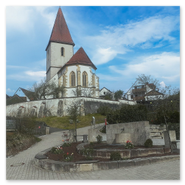 weichen. An Audio-Stationen können wir mehr über seine Geschichte erfahren, unter anderem an einem eisernen Kreuz, von wo aus wir schon den weißen, etwas gedrungenen Kirchturm mit grüner Zwiebelhaube der Kapelle Mariae Schnee erblicken. Auf dem Weg dorthin überqueren wir an einer Schranke die Straße und radeln an Atzlricht vorbei zur Kapelle (18,2 km), die auch meistens geöffnet ist. Der eigenartige Name Mariae Schnee geht auf eine Legende zurück. Einer römische Familie wurde auf Bitten Mariens der Wunsch nach einem Kind erfüllt, wenn sie auf einem Hügel in Rom nach Schnee suche und dort eine Kirche erbaue. Dies geschah an einem 5. August, also mitten im Sommer – seitdem ist dies der Patroziniumstag aller Kirchen diesen Namens, von denen es allein in Bayern fast 20 gibt. Wir radeln zurück zur Schranke und halten uns jetzt rechts. Unterwegs bietet sich ein schöner Blick über Amberg zum Mariahilfberg. Links geht es nun durch Lengenloh und geradeaus über eine Wegkruzung nach Speckmannshof. Wir überqueren die Kreisstraße in den Heffnerweg, und biegen auf ihm bald nach links ab. Nun geht es 1,3 km Richtung Fichtenhof, an der nächsten Straße aber nach rechts hinunter über Fiederhof, die B 85 und durch Schäflohe. Am Ende einer längeren Steigung öffnet sich ein weiter Blick über das Vilstal , auf den Annaberg und die Herzogstadt. Es geht steil bergab nach Poppenricht. An der St.-Michaelstraße nach links zum neu gestalteten Dorfplatz und dann zur Staatstraße, der wir nach links über den Tafelberg nach Sulzbach-Rosenberg folgen.Einkehrmöglichkeiten: Prohof, Dietersberg, Ammerthal, Lohe.
