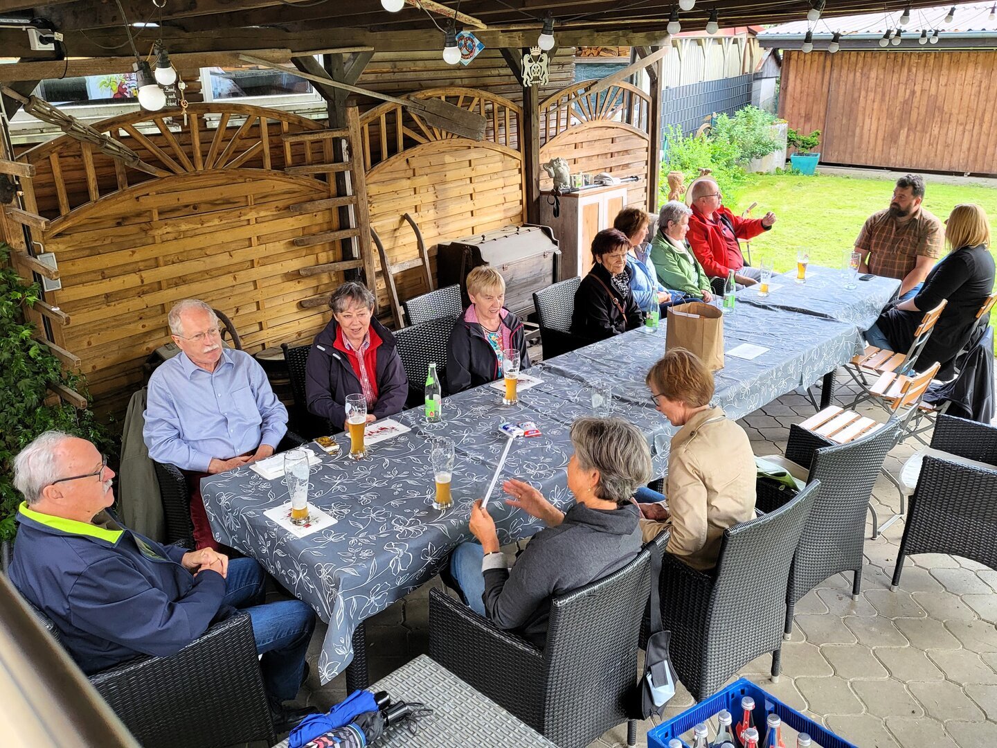 Im Fischergarten gab’s endlich die verdiente Brotzeit – Leberkäs von Rötzer, Semmeln vom Fischer, und zum Nachtisch: eine Drachen-Saga von Sepp Lösch in original Rosenberger Mundart. Die Geschichte vom gierigen Geiger, dem feurigen Drachen und dem geheimnisvollen „Geigenpumperloch“ war so lebendig, dass man fast das Pumpern gehört hätte – oder war das doch nur der Magen?