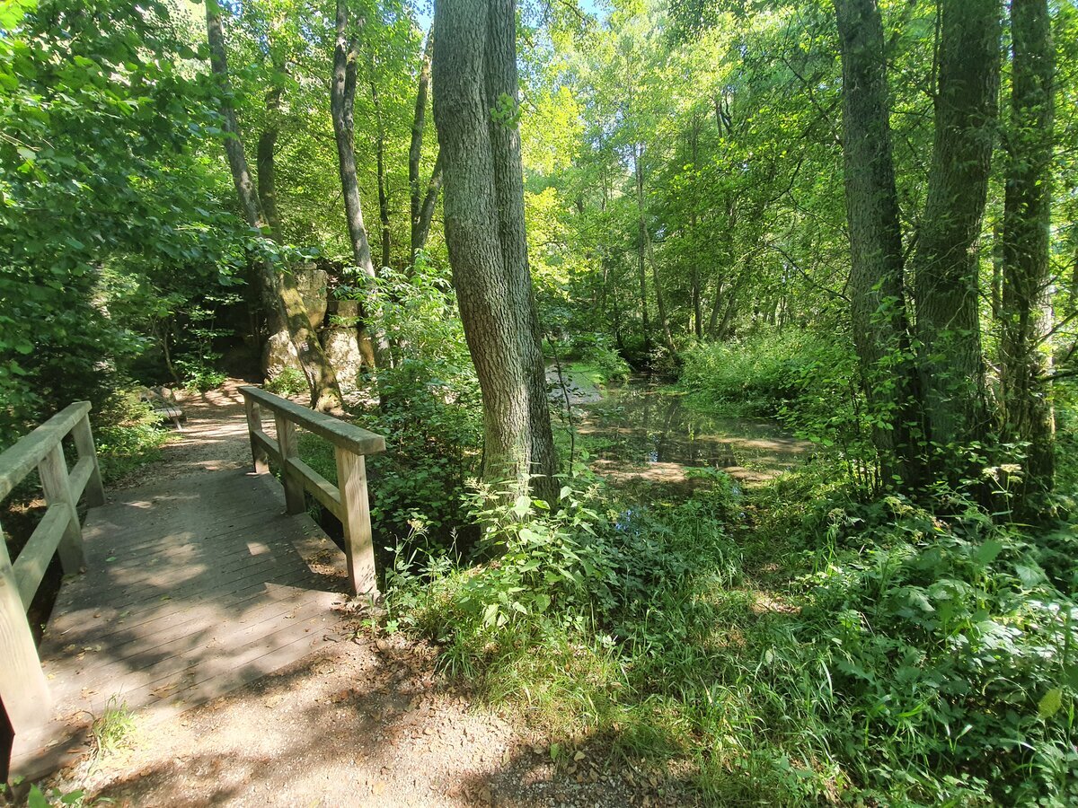 Jetzt wird’s sprudelnd schön: Im Breitenbrunner Tal erwarten uns die Sieben Quellen – ein geologisches Wunderwerk direkt aus der Oberpfälzer Trickkiste. Hier schießt das Wasser aus dem Boden, als hätte Mutter Erde gerade eine Runde Frische aufgelegt. Wer mag, darf die Füße kühlen (aber Obacht: Karstquellen sind launisch, mal da, mal dort!) – ein echtes Natur-Highlight!
