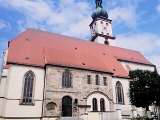 Links erhebt sich stolz die Stadtpfarrkirche St. Marien – das seelische Zentrum der Stadt, quasi das WLAN der Gläubigen. Vom Plateau der Kirche aus bietet sich ein beeindruckender Blick auf die Schlossanlage und das Rathaus. Gleich daneben: das Jakobhaus, ein echter Oldtimer unter den Gebäuden. Knapp 800 Jahre alt und heute Heimat von Gelato-Träumen und einer Zeitung – wer hätte gedacht, dass sich Klassik und Kugel Eis so gut vertragen?