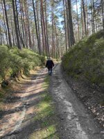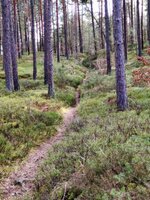 Der ist nach wenigen Metern plötzlich tief eingeschnitten. Warum weiß man nicht. Er schlängelt sich durch den lichten Kiefernwald, unserem Startpunkt „Auf der Ruhe“ entgegen.
