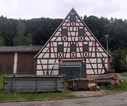 Hier geht es bergauf nach Poppberg (km 19,3). Wer die Burgruine besichtigen möchte, fährt noch ein paar hundert Meter weiter und steigt dann am besten zu Fuß durch den Wald hinauf. Der Rückweg von Poppberg führt etwa 500 Meter über den gleichen Weg zurück. Danach biegen wir rechts ab, überqueren die Autobahn, und das Rad läuft fast von alleine an Riedelhof vorbei bis Schwend (km 23,6). In der Ortsmitte, kurz nach dem Café Maulbeck, folgen wir dem Wegweiser nach rechts, passieren das Café Anni und erreichen nach 2 km Betzenberg.